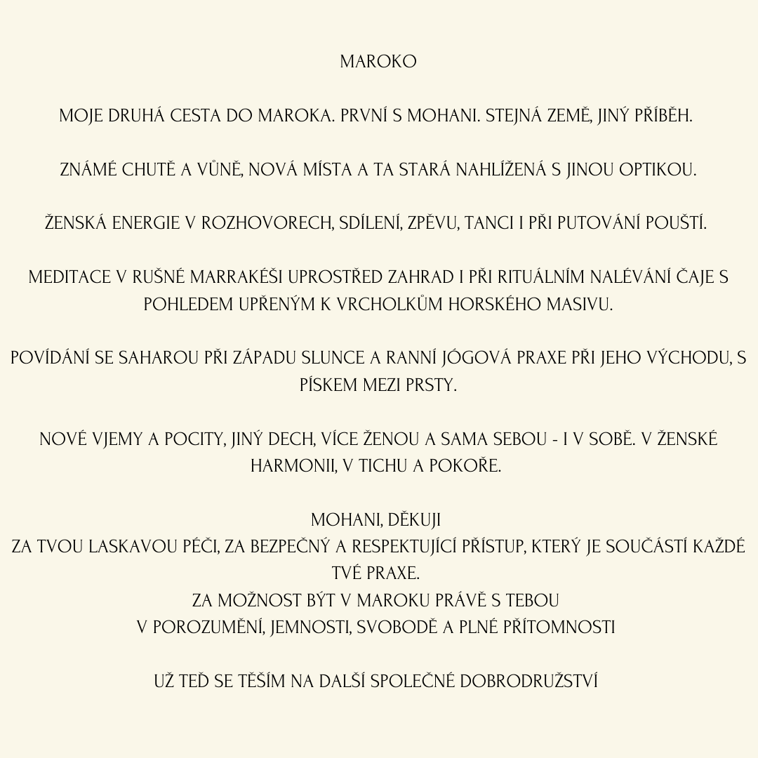 Zažít Maroko jako nezapomenutelnou transformační cestu je dar, který si můžeš dopřát i TY. Protože právě teď je ta chvíle. Právě teď je ten čas!